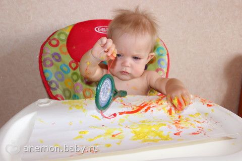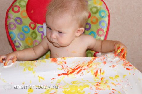 Да ладно. Это пальчиковые краски, они очень легко смываются. Я вот с Тасей на руках все и вытерла.