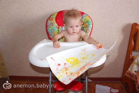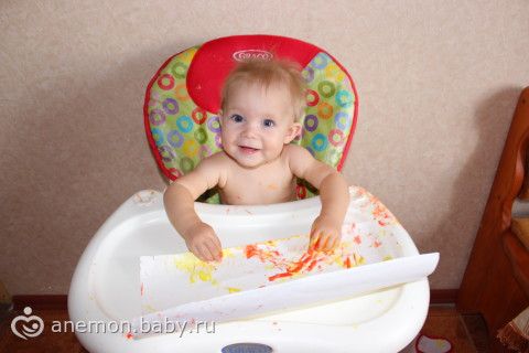 А теперь итоги: перепачканы 2 стола (1 детский, 1 взрослый), 1 слюнявчик (это было случайно), пол в радиусе 1 метра, 3 игрушки были разукрашены, испачкали даже фотоаппарат (меня чуть кондратий не хватил!). Но зато 1 довольный ребенок, который уже чистый и накормленный мирно сопит в своей кроватке.