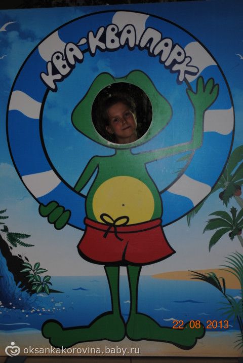 Ква-ква-парк был выбран не случайно: подходил нам и по расположению и по отзывам. Специально выбрали будний день (четверг), чтоб народу было не много! НО!!! Мы пошли туда 22 августа, а это день государственного флага, и администрация, видимо воспылав патриотическими чувствами, решили сделать скидку 50% всем, кто пришел с 10 до 14! Вы бы видели, что там творилось… Мы пришли к 11:30, отстояли мегаочередь и за два человека до нас кассы перестали продавать билеты, т.к. аквапарк был ПЕРЕПОЛНЕН! Еще полчаса ожидания и нам все же продали билеты и даже со скидкой. Но идти сразу в это столпотворение мы не решились! Покушали, погуляли по центру и когда первая порция людей схлынула зашли внутрь и понеслась: