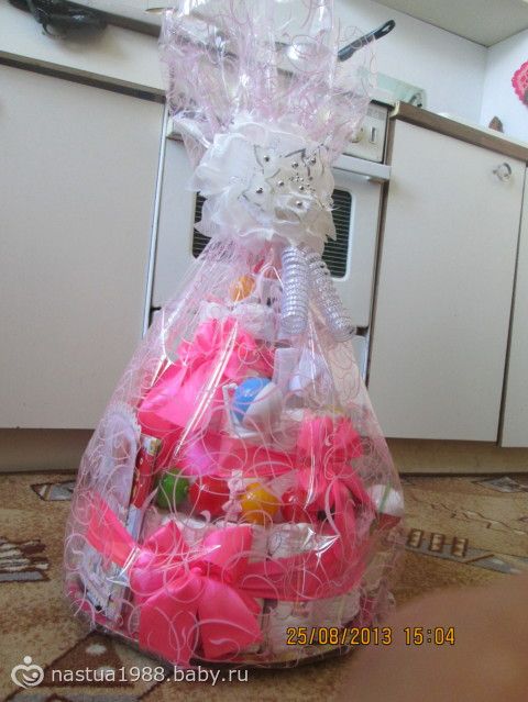 Ну, вот и дождалась я звонка от моей дорогой подруженьки, и рассказа про поход, к новоиспечённым родителям))) Сначала была дома, одна мамочка, которая очень -очень была рада такому сюрпризу, сказалда, что этот подарок понравился ей больше всех подаренных… Ей прям сразу захотелось порытся в нашем тортике, всё рассмотреть, потрогать, ещё она очень удивилась что сделали мы сами, своими руками, и ей стало вдвойне приятно))) Потом пришел папка, и ему тоже очень все понравилось, он сидел всё разглядывал, распрашивал)))Затем пришла ещё там какая то родственница, и снова положительные оценки в нашу сторону)) Девочки, так приятно, совсем чуть-чуть потраченного времени, и такие приятные и теплые слова.Я ОЧЕНЬ РАДА.
