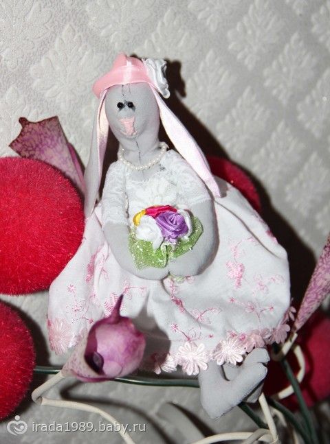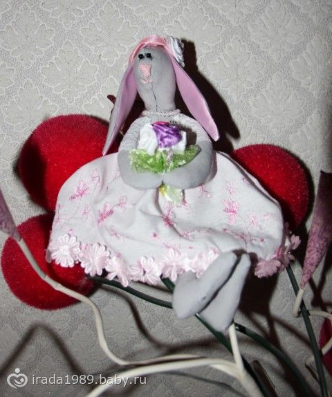 С мордочкой нужно поработать))))) Грустная получилась) Глаза сначала нарисовала фломастером, он блин растекся… В общем Зайка в цветах получилась! На ваш суд девочки)