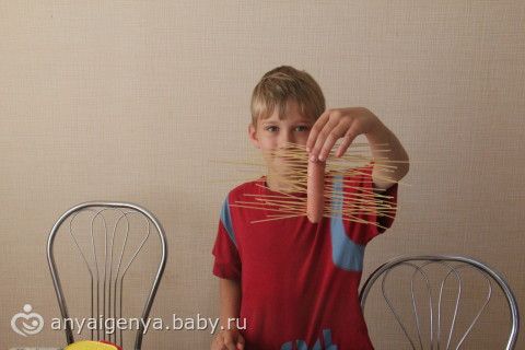 А вчера делали с детворой веселый завтрак, осьминожки. В сосиську продевали спагети, потом вари в подсоленной водеМои плохие едоки ели этих осминожек на перегонки. фотки готовых осьминожек не успела