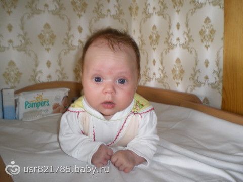 О, да, мы с мужем тоже радуемся дочиным какахам=))) И, кстати, наша тоже еще не переворачивается. Настюшка великолепна, такой милый голубоглазик!