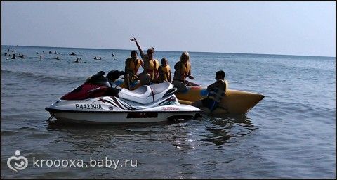 Катались на банане)) Тоже было весело, парень на катере пофигист, да там большинство работников такие)) в общем уехали мы далекоооо очень, ну говорит можете покупаться, в общем с нами было 2 деток, мой брат 7 лет и девочка может тоже лет 8 ей, я спрыгнула, говорю- ныряйте, жилет держит, было у нас 5 минут поплавать, когда силы иссякли решили залезать обратно, но блин это не так просто как кажется, я из последних сил пыталась запрыгнуть, точнее все разом и как перевернем эту штуку под названием банан)) страху было пипец)) нас всех накрыло, кое как выплыли, сил ваще нет, ору этому парню типа помогите спаситевижу дети вообще не на шутку испугались, думаю только их истерики не хватало… Парень нехотя поворачивается, ржет… Ну кое как медленно помог нам, понимаю, что сама не запрыгну, да и дети тоже… начали по одному, муж брата то закинул, а девка вся трясется( без мамы была), в общем у самой сил нет, а решила деточке помочь)) подставила руку и она залезла… меня как-то затащили)))) ой весело было))))
