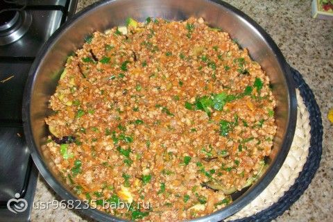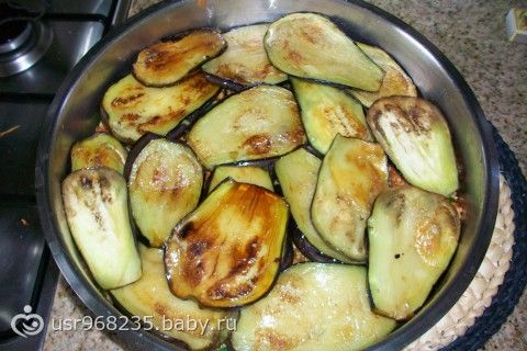 И снова закрываем его слоем овощей(у меня только баклажаны сверху)