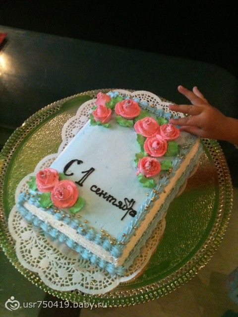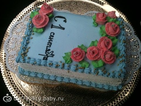 Вчера ходила поздравлять свою старшую племянницу с 1 сентября, она в 1 класс пошла, заказала ей торт в виде букваря, но видимо кондитеры никогда не видели букваря и налепили розочек, но это настроение не испортило и младшей племяннице очень понравились они на вкус