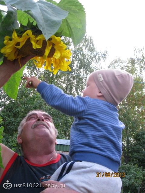 это дедушка внуку подсолнух нагнул, ух они и вымахали!!!