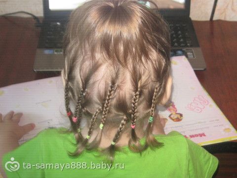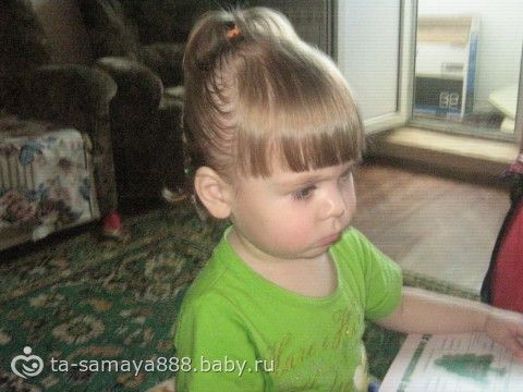 пока доча смотрела машу и медведя,я пристроилась взади и вот что делала3 сентября 2013 16:24 еще подстригла ей челочкуеще делала ей вот таквобщем люблю я дочи чудить на голове...)))