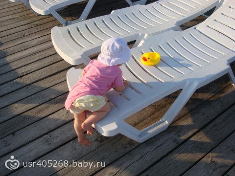 А ещё там она научилась хорошо слазить и залазить на кровать и пляжные лежаки ))) Был бы стимул ))).
