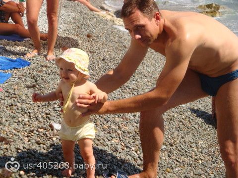 Юле очень нравилось ходить по пляжу, по камешкам. Она постоянно порывалась за чужими игрушками и надувными кругами )))). Жаль, что нашего размера нет, ато мы б ей круг купили. ))))