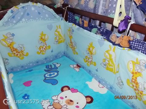 вот решилась я таки купить бортики, а то мой бэбик стал мерзнуть по ночам)))) да и крутится как волчок и головой бьется о прутики деревянные. а теперь- красота))) тепло и уютненько))) прям довольная я такая
