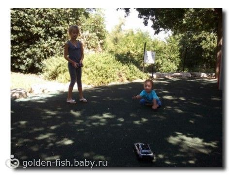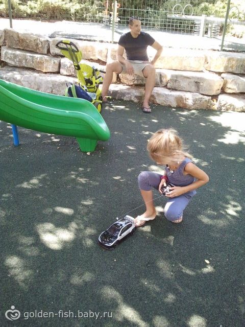 У нас есть одна любимая детская площадочка в Рош-Пине.Она такая славная, чистая, маленькая и на ней никогда никого нет.Во круг нее растут деревца типа липы, которые накрывают ее своими кронами.Поэтому там всегда тень.И всегда есть ветерок, потому что в горах, высоко.И воздух свежайший, прозрачный… Вообщем, СКАЗКА.Рош-Пина действительно сказочное место.И когда хочется прогуляться, но облом далеко ехать, мы всегда ходим гулять туда.По дороге заскочили на несколько заправок в поисках батарейки в пульт для машинки.Нашли.Вы не понимаете, сколько радости было у детей… Ронька быстро научилась управлять ею.А Мишун ползал за машинкой, пытаясь догнать ее и поймать, выяснить как она работает и кинуть ее куда по-дальше.