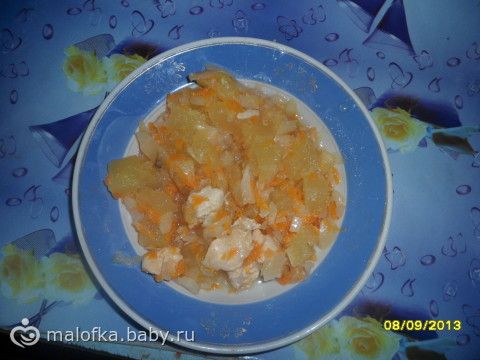 Обед: тушеные овощи с курицей (курица кусочками тушилась вместе с овощами)