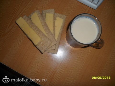 Ужин: 4 хлебца с сыром, чай с молоком (хотела сделать что-то белковое, но не успела приготовить, а овощи есть не хотелось)