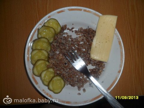 Обед: как и вчера, гречка, огурец, сыр, чуть соевого соуса