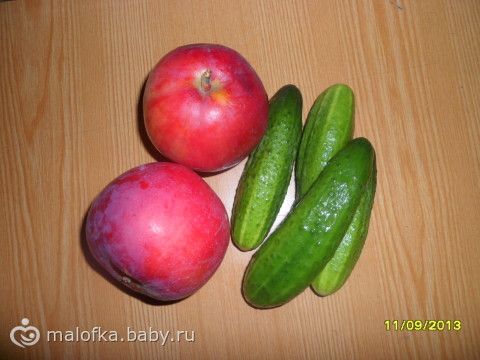 Ужин: 4 огурчика, 2 яблока, не успела ничего приготовить, целый день мотаемся туда-сюда