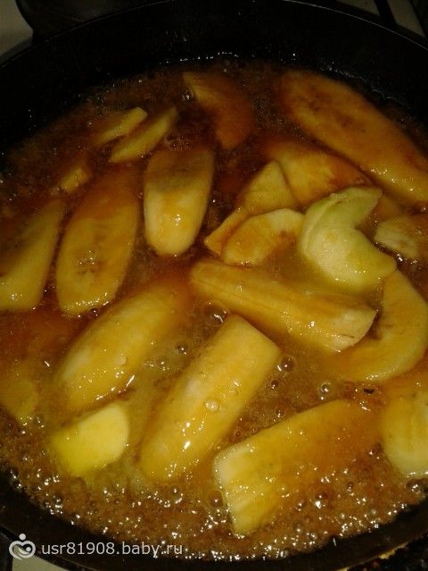 Положила 100 гр. масла сливочного и добавтла бананы и яблоки