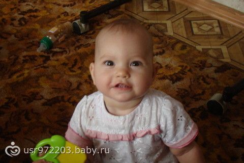 Всем привет, как же быстро летит время. вот и нам 16,09 уже 8 месяцев, Доча выросла, многому научилась: ползает не догонишь, встает, ходит держась за диван, стоит без поддержки почти 1мин. Здоровается рукой, машет пока-пока, играет в ладушки, сороку, знает игрушки(мячик, дракон, утку, показывает, дает) Щебечит как соловей, столько звуков произносит, четко мама, папа, баба, но не осознано. Кушаем почти все, овощи, фрукты, мясо, творог, и другое. и ещё вчера прорезался 8й зуб. Очень любим свою девочку