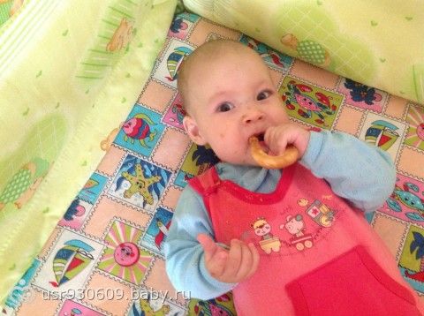 Сегодня нашей малышке исполнилось 6 месяцев.Сегодня я поняла как быстро растут дети.Мы уже умеем переворачиваться с живота на спину, понемногу начинаем хотеть сидеть, лежа на спине приподнимаем плечи и голову довольно высоко чтобы посмотреть телевизор.Обожаем играть в ку ку, причем она сама инициатор этой игры.Вот только на ручки просится так и не научилась.Весим мы 7 400, рост 70 см.