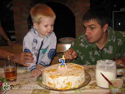 А это с папой задуваем свечку на тортике. Тортик пекла сама, получился очень вкусный.