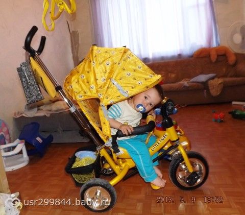 велик трехколесный с ручкой, есть, но у нас дешманский и оч плохо управляется.