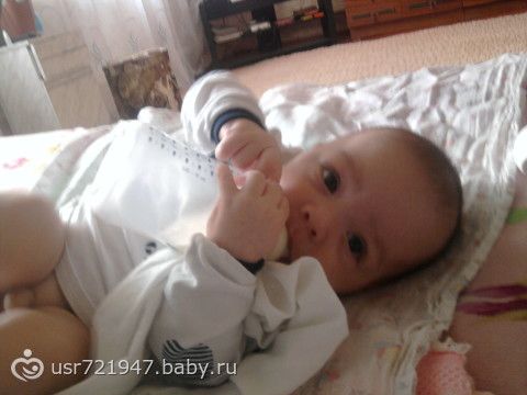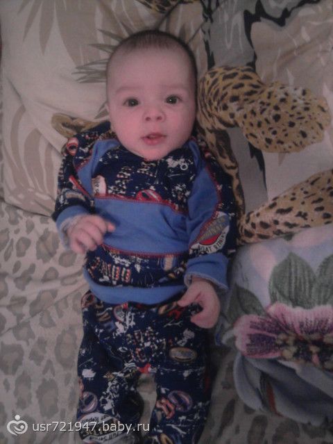 Весим 6700, рост 65 см. Температура наша (37) так и держится, поэтому прививок пока никаких и не делали.Правда у нашего папы температура постоянная нормальная 37 и ему первую прививку в 2 года сделали(не считая бцж в роддоме).Насморк не проходит уже третью неделю, сегодня отправили на физиолечение. Думала сынок не даст носик греть, но тетя врач так его развлекала, что он аж застыл и все процедуры мы сделали.Мы умеем переворачиваться на животик и обратно, крепко хватаем что попадает под руку и сразу в рот, пытаемся ползти — коленки под себя поджимает и обратно ножки выпрямляет, руками пока не сообразил что надо тоже передвигать. Смесь едим плохо 90-120 мл в кормление, поэтому начала давать пюре «кабачок», сыночку понравилось, на завтрак едим.И ура — мы стали сами какать — без трубочек и палочек, не передаваемое счастье.