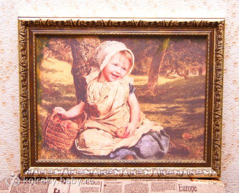 Вот такую картину некоторые видели мои подружки… Я её в Instagram показывала. С Алтая родители мои привезли. Монтируют авторы фото личика твоего ребёнка (с фотографии) в тематическую картину. Вот она моя крестьянушка Асильда… Очень аккуратно и качесвтенно сделано.