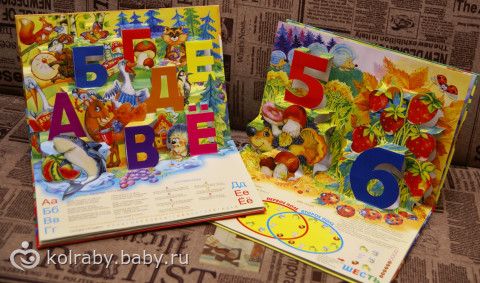 книжки АЗБУКА И СЧЕТ у нас такие же, дети по очереди с ними таскаються)))) Настя называет, КАтя пальцем тычеи и все хочет выдернуть эти фигурки обьемные)))
