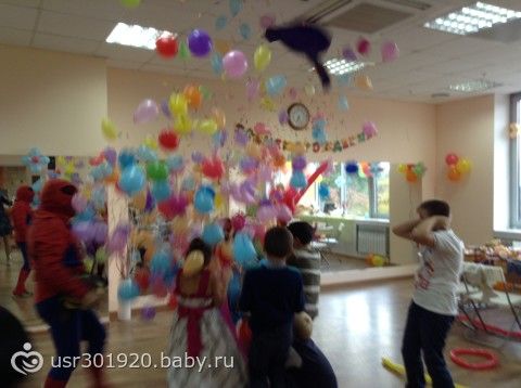 На голову сыпятся маленькие шарики и конфетти! Дети визжат от восторга и начинают радостно лопать их ногами!)) Мин 10 такое ощущение, что Новый год наступил и салют громыхает)) Закрывают уши и всё равно скачут на шариках)))