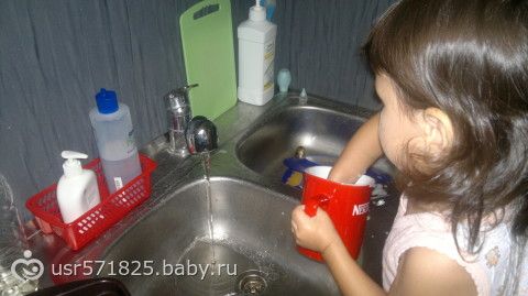 умничка какая!!! моя до сих пор не моет)) хм… надо на кухню загнать как-нить — пусть учится!