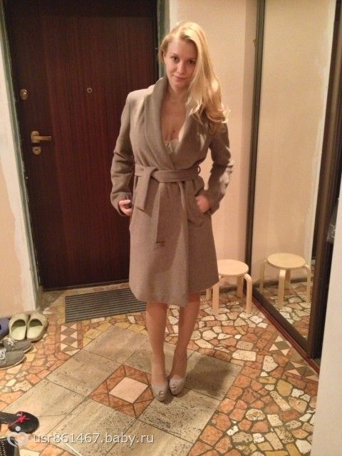 А еще я после долгих скитаний в торговом центре в поисках каких- нибудь не дорогих обертенек, набрела на супер крутую вещь, которую давно искала!!! Пришлось уламывать мужа, суммой такой большой я не располагала, он конечно счастлив не был, но при помощи продавца мы ловко его убедили в острой необходимости польто для нас с малышом. Оно действительно очень универсальное, запах позволяет носить его с огромным животом, хотя размер мой самый маленький+ оно очень теплое, шерсть с ангорой )))
