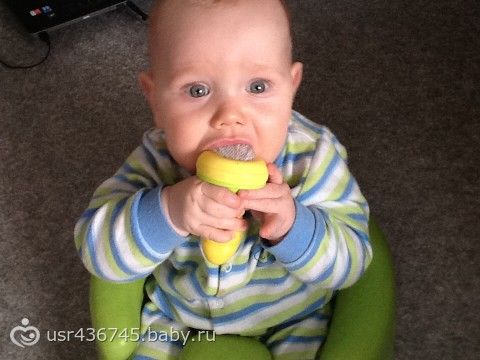 Глазки у нас что-то начали заливаться немного карим с серединки, пока едва заметно, но неизвестно как будет дальше. Прямо вижу как наши с папой гены борются в этом ребенке :) У него даже волосы растут через один, один русый, один блондинистый золотой. В итоге такой почти рыжик получается.