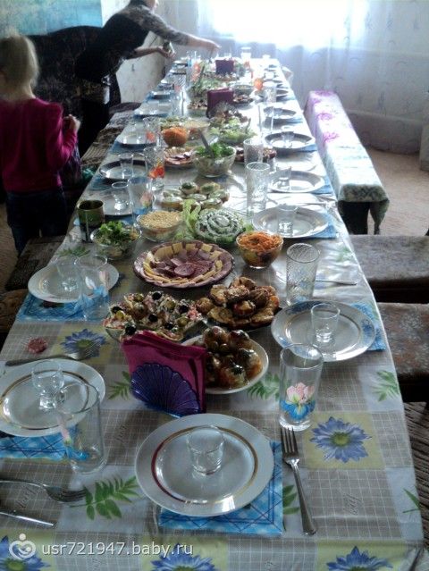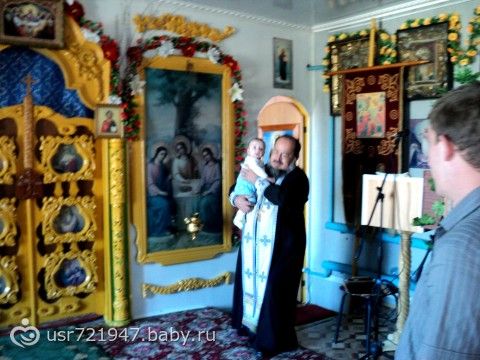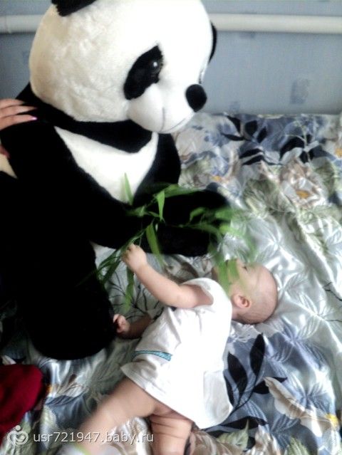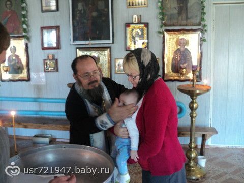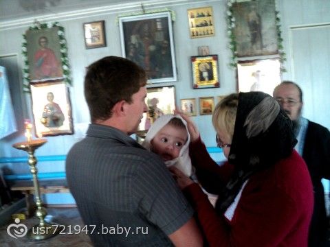 Вчера покрестили сына.Так как нашей крестной нет еще восемнадцати лет, то в ритуале ее заменяла моя мама, а батюшка ее называл временно исполняющая обязанности крестнойВсе прошло просто отлично!!! Я думала малыш будет плакать, так как слезами и ором реагирует на незнакомых мужчин, особенно с растительностью на лице.А тут прям я удивилась, даже не пискнул и улыбался Батюшке! Самым трудным было накрыть на стол, так как самых близких родственников 26 человек из них кого-то не позвать — нельзя.Благо жилищные условия позволяют такой стол накрывать!!! Надарили кучу одежки, денежек, но самым замечательным подарком оказался мишка-панда от двоюродной бабушки, которого мы тут же попробовали на вкус!!!
