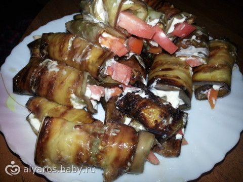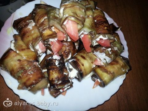 баклажаны порезать кольцами, послоить и оставить на час где то чтоб горечь ушла, потом обжарить с 2х сторон. смешать майонез, укроп и чеснок и положить сверху. быстро и тоже вкусно! надо сделать, а то даже и не помнила пока пост этот не увидела=)