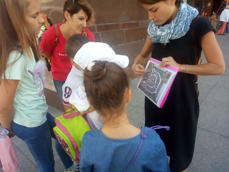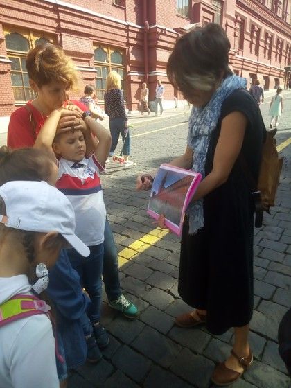 А началась наша прогулка с экскурсии для детей «Центр города», организованной компанией «Музейка». Кроме Ани было еще 3 ребенка. Ника с папой в это время пошли осматривать объекты на Манежке и Охотном ряду, построенные ко Дню города.