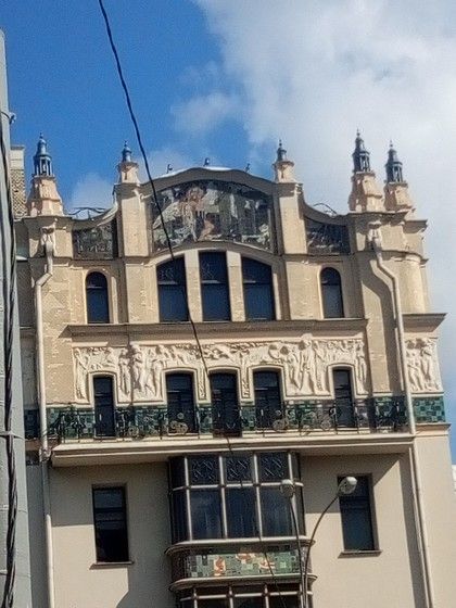 Наконец, познакомились с гостиницей «Метрополь», крупнейшим зданием в стиле модерн, правда, с торца, но все равно рассмотрели несколько майоликовых панно