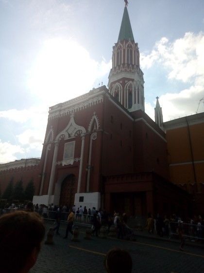 Подошли к Покровскому собору, выяснили, сколько в нем церквей. Экскурсовод считает, что он был нашим «Иерусалимским храмом Гроба Господня» (рассказывала про политические концепции «Москва — второй Иерусалим» и «Москва — третий Рим»).