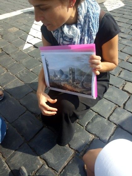 Наш экскурсовод Дарья решила отправить нас в путешествие по странам и эпохам, которое состоялось благодаря изучению истории и языка архитектуры объектов центральных площадей Москвы. Для начала посмотрели карту средневековой Москвы и выяснили, в какой части мы сейчас находимся, и потом периодически вспоминали, куда и откуда мы перемещаемся.