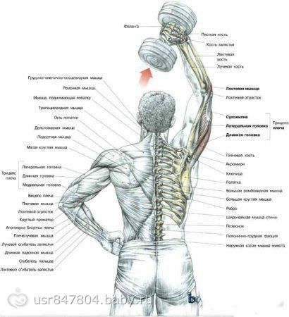 5 Разгибание рук из-за головы с гантелей (2-3 кг) 3 подхода по 15 раз