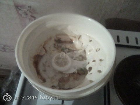 Это пластмассовая штука для варки на пару я на ней бутылочки стерилизовала ставила на газ чашку с водой и сверху ее, ну тут доча заплакала пока переодела ее и вот тебе на… дела… блин бутылочку жалко и ночь ужасная будет доча с простой уже не ест захлебывается… ПИПЕЦ!!!