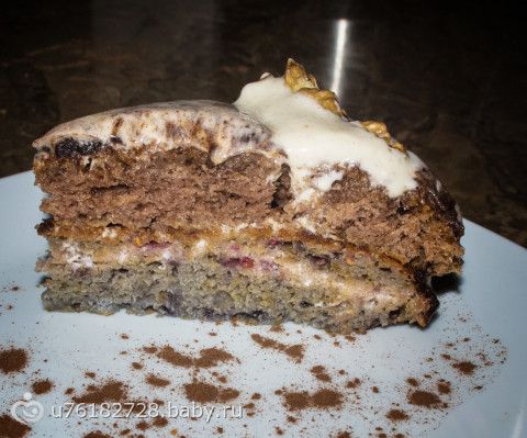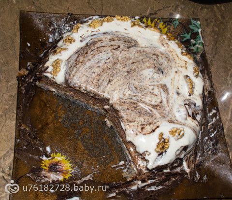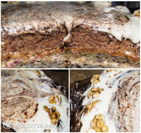 Ну вот и все) Коржи промазала кремом, сверху вылила остатки, по бокам поставила «дамбу» из орехов, чтто б все не растеклось))) Как я говорила уже красоту я тортам наводить не умею, так что стршненикье они у меня, но вкусненькие)) Домашние оценивают
