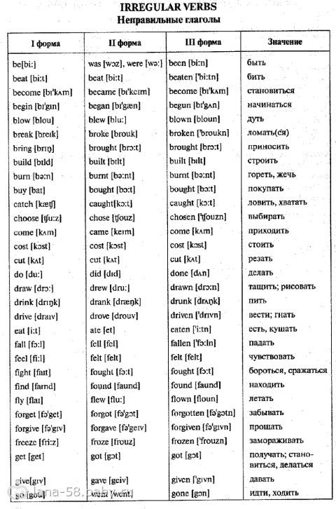 Однако есть также достаточно большая группа неправильных глаголов, которые образуют форму прошедшего времени не по общим правилам, для них форму прошедшего времени нужно просто запомнить.