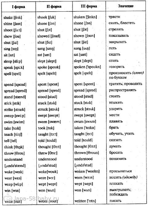 Tell-told-toldиsing-sang-sung(рассказывать) (петь)