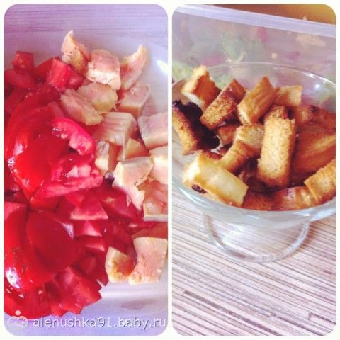 Привет всем))) как обычно начнем с еды, чтобы под конец про нее забыли)))) готовила мой любимый салат цезарь, но на этот раз сама запекала сухарики! Намного вкуснее, чем покупные))