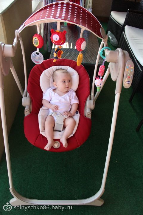 Стульчик купила в 5 месяцев, а с 4 в качелях кашку ели. Шезлонг оттуда можно снимать и по кв носить