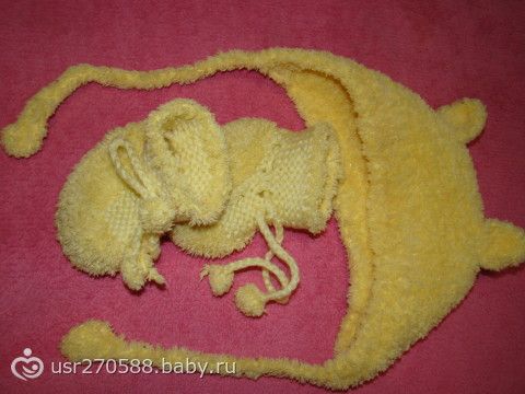Шапочка и пинетки младшей дочи. Очень нраятся эти вещи, мягкие и пушистые, а особенно как они смотрятся на моей девочки мммммммм........