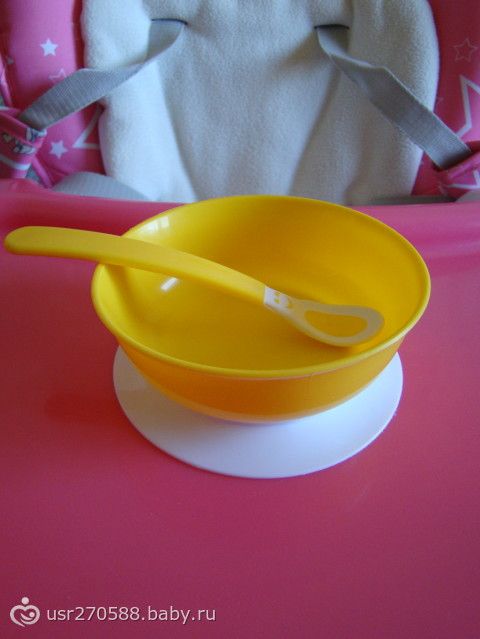 Дочина тарелочка с ложечкой. С 6 месяцев пытаюсь ввести прикорм, приобрела всё необходимое, но чтото у нас плохо получается кушать чтото кроме сиси… В основном тарелочка с ложечкой используются больше в игровых целях (погрызть, постукать и т.д.)