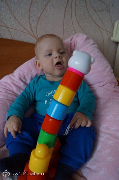 Кстати, в вашем возрасте у нас любимыми «развивашками» были кубики Фишер Прайс.