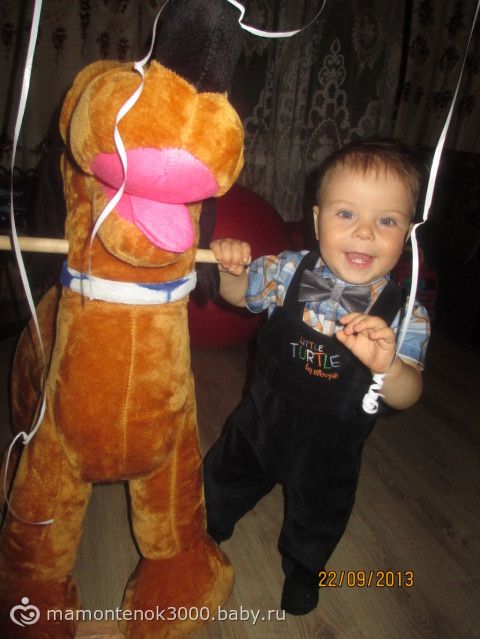 с опозданием наш фотоотчет с первого дня рождения) Вот и нам исполнился годик!!! Целый год наш сынок нас радует каждый день!!! Мы его очень-очень любим! У него уже 8 зубов, он начинает сам ходить, пока еще предпочитает ползти, но в хорошем рсположении духа пойдет) собираем пирамидку, домик из кубиков, вставляем фигурки в отверстия, нажимаем на всем кнопочки, машем пока-пока и прочее...