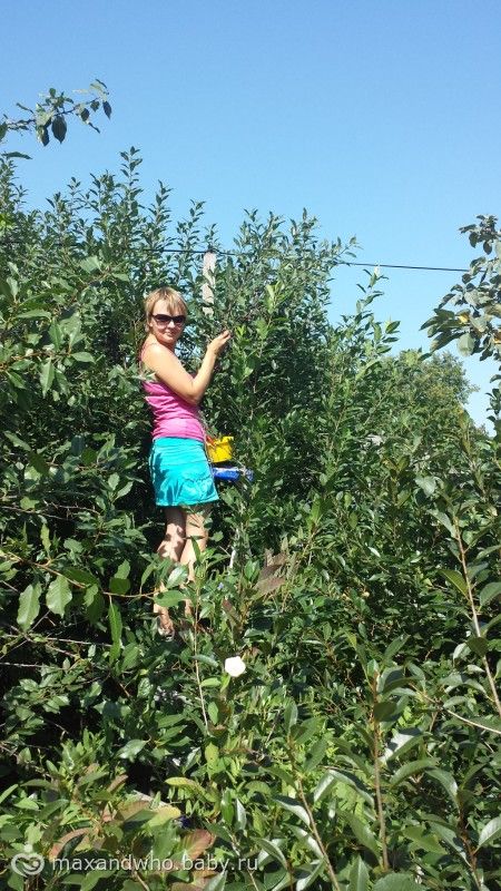 тут выпал случай детство вспомнить, соседка Ани бабка вредня, немного сумсшедшая, но большим ее + была яблоня с ароматными румяными яблочками! и я полезла:))) а девки меня страховали:))))